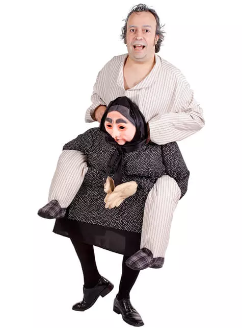 Incluye: Vestido con muñeco de abuela, piernas falsas y camisa de rayas