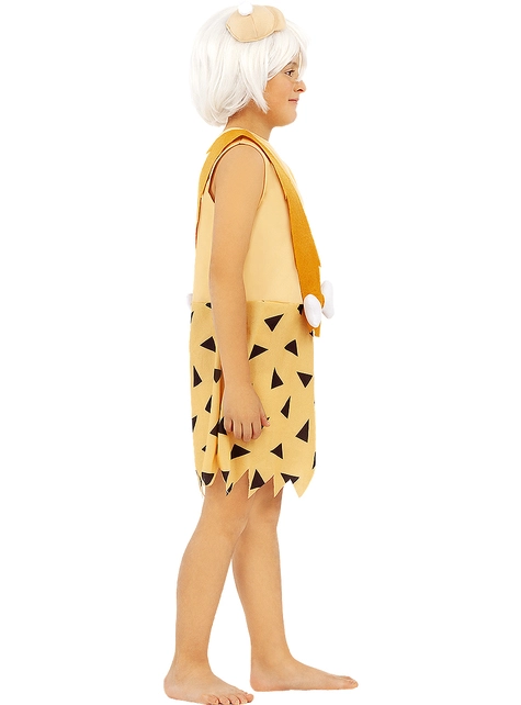 Este es el traje oficial de Bam-Bam de Los Picapiedra, por lo que no le falta detalle. Este disfraz de Bam-Bam para niño incluye una túnica corta sin mangas, acabada en picos y con estampado de triángulos negros en la parte inferior. Además incluye un hueso colgado en la parte del torso, algo característico del atuendo de Bam-Bam. No puede faltar una peluca blanca con el pelo corto, seña de identidad del pequeño de los Mármol.