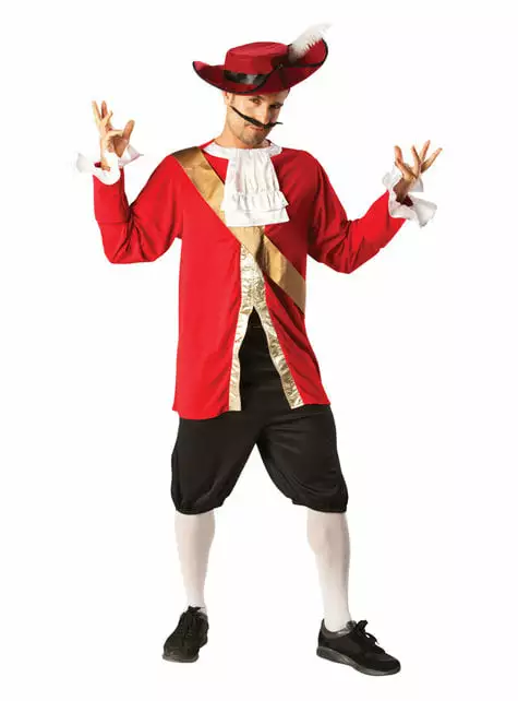 Incluye: chaqueta con cinturón, pantalón pirata y sombrero con pluma