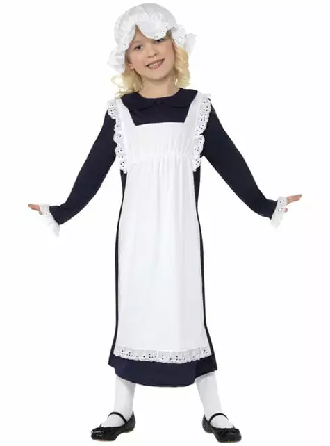 Pertenecerás a la plebe con este disfraz de chica pobre victoriana para niña.