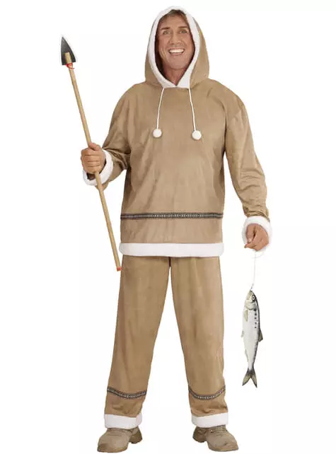 Cuídate de este clima gélido con este disfraz de esquimal para hombre.