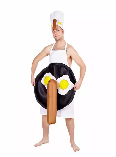 Incluye: delantal con plato huevos y salchicha y gorro con salchicha