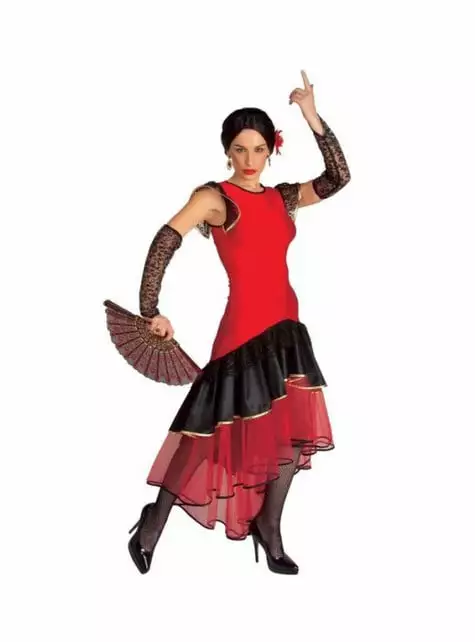 No incluye: pendientes, peluca, rosa para el pelo, abanico, medias ni zapatos