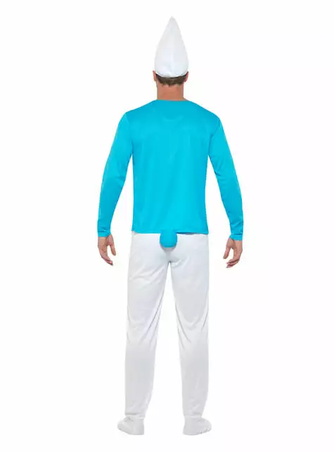 Este disfraz de Pitufo incluye unos pantalones blancos, una camiseta azul, una colita azul con forma de pompón y un gorro de pitufo blanco para dar el toque final a tu disfraz de pitufo.