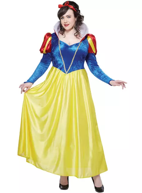 Ten cuidado con las manzanas envenenadas y sé muy feliz con este disfraz de Blancanieves para mujer talla grande.