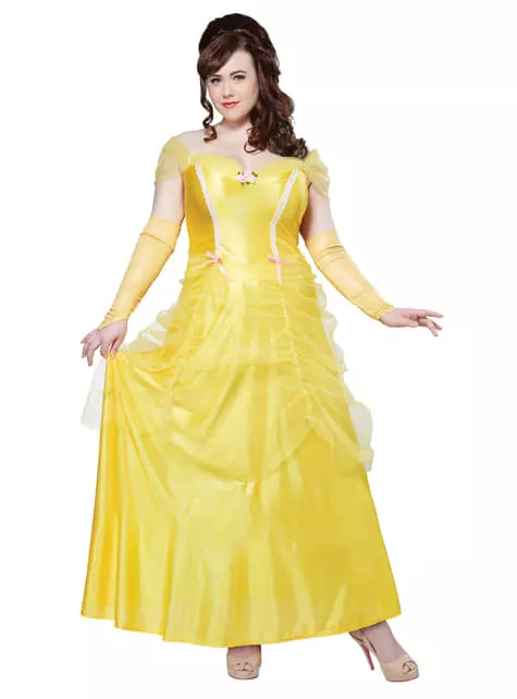 Forma parte del cuento de La Bella y la Bestia con este disfraz de Bella para mujer talla grande.