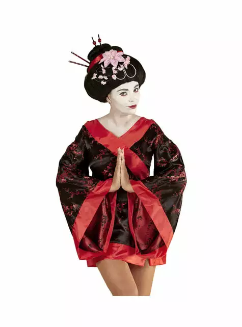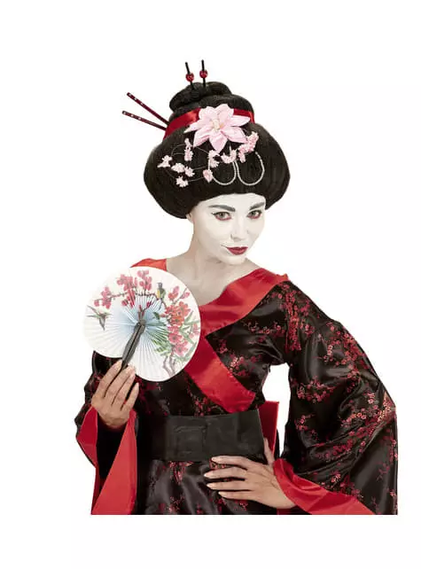 Incluye: peluca con flores y palillos